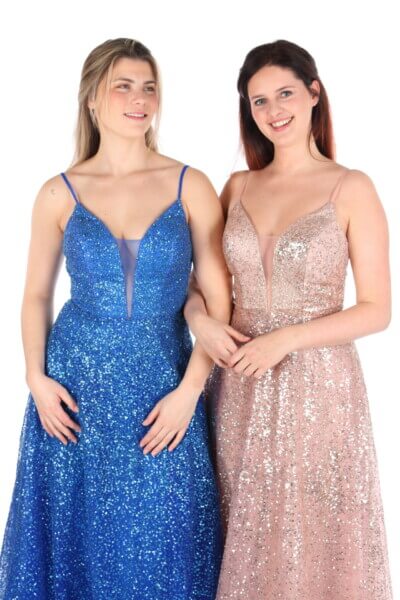 Deze jurk tailleert klein. Ons model draagt maatje 40.