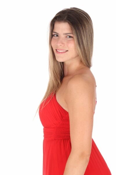 Deze jurk valt ruimer vanwege de stretch op de rug.
