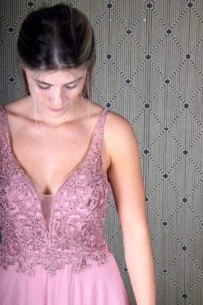 De jurk tailleert op maat.