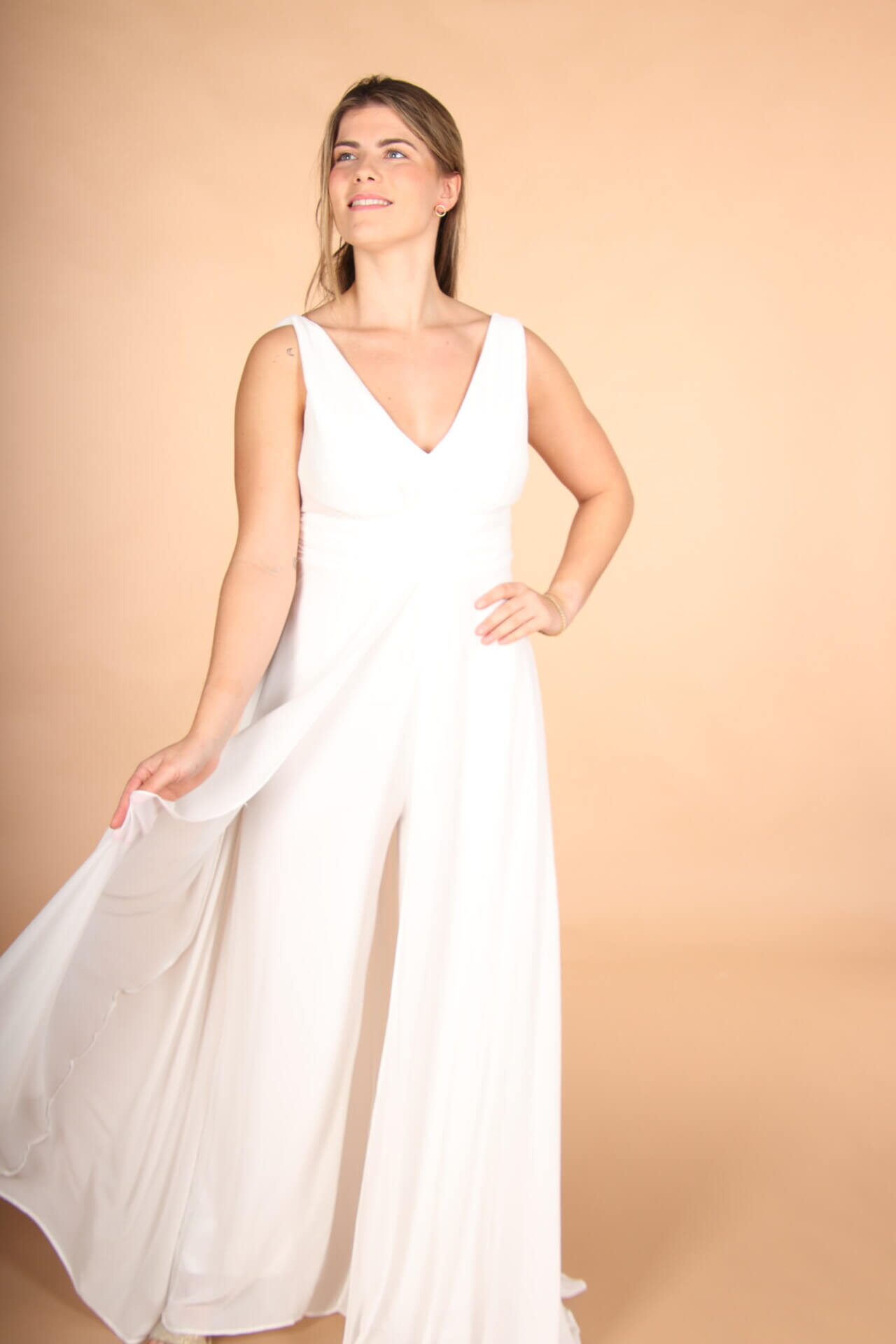 Ons model draagt maatje 40. Deze jumpsuit tailleert klein.