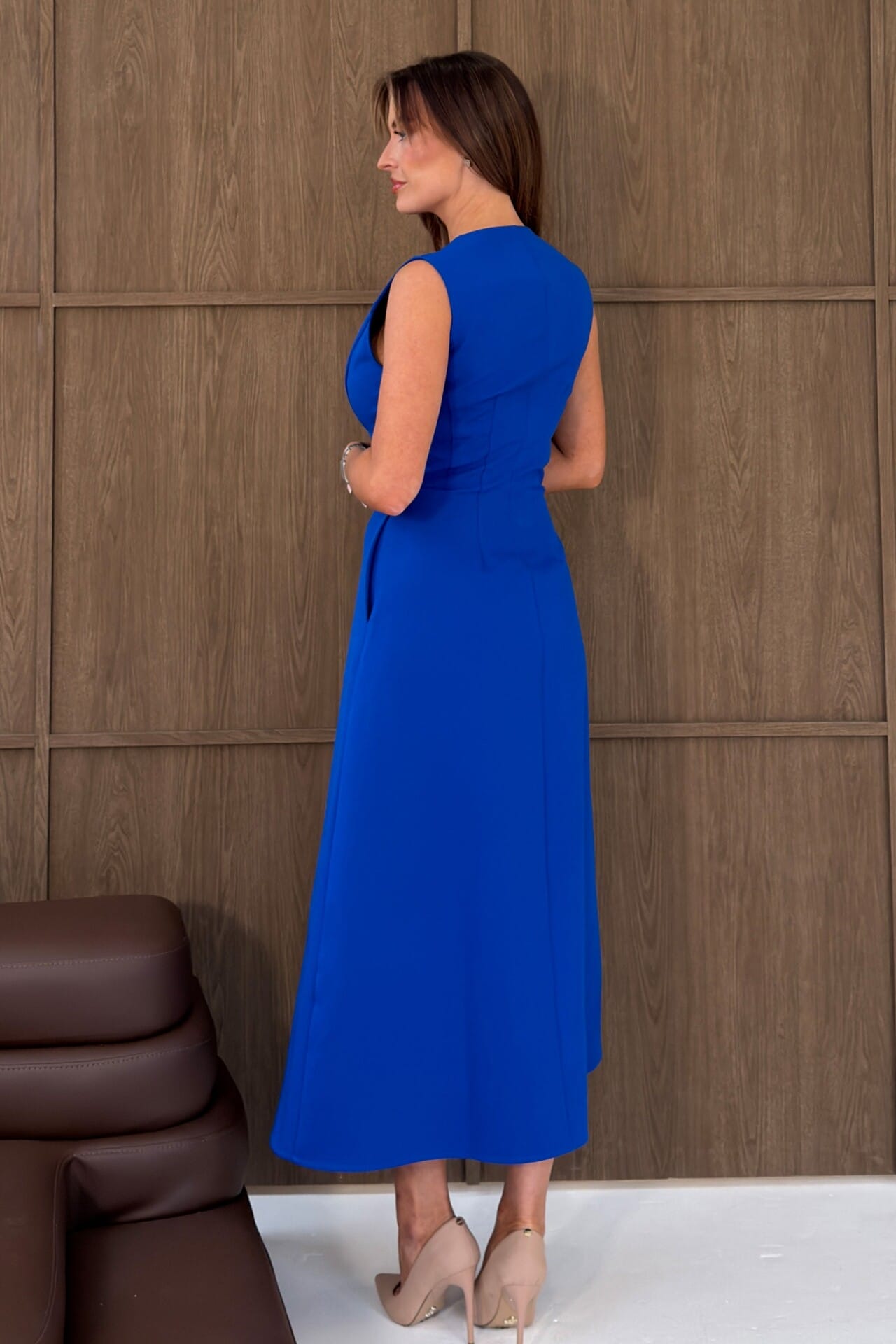 Deze ‘Kazy’ jurk heeft een flatterende pasvorm, is gemaakt van kwalitatieve stof en is afgewerkt met een dubbele knopenrij. Het elegante fit & flare-model laat je figuur mooi uitkomen. Perfect voor een dag op kantoor en net zo geschikt voor een drankje na het werk. Combineer met hakken of laarsjes voor een stijlvolle look, van kantoor tot avond.Het model draagt maat 36 en is 1,68 m groot.