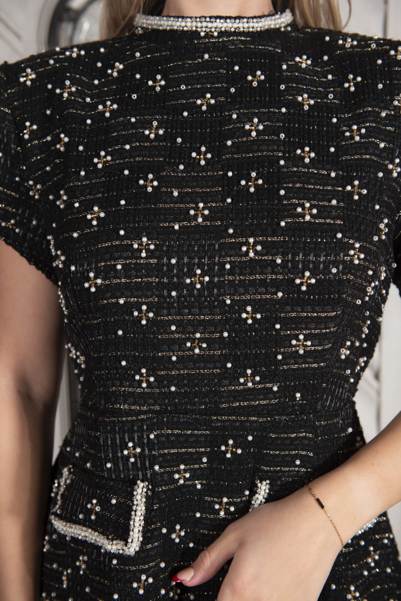 Upgrade je partylook met deze mini dress. De ronde hals en korte kapmouwtjes geven een trendy edge, terwijl de glinsterende tweed stof meteen glamour toevoegt. Kort, speels en onweerstaanbaar stijlvol 🔥