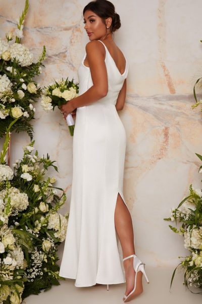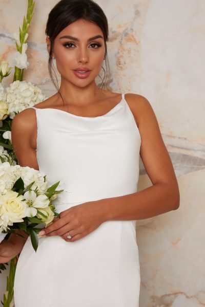 Wees een toonbeeld van elegantie op uw grote dag met onze prachtige jurk “Liven”. De jurk heeft een gedrapeerde halslijn en gedrapeerde achterkant. De prachtige satijnen jurk heeft een aansluitend bovenstuk.