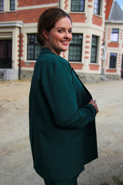 Je kan de blazer combineren met de bijpassende broek: