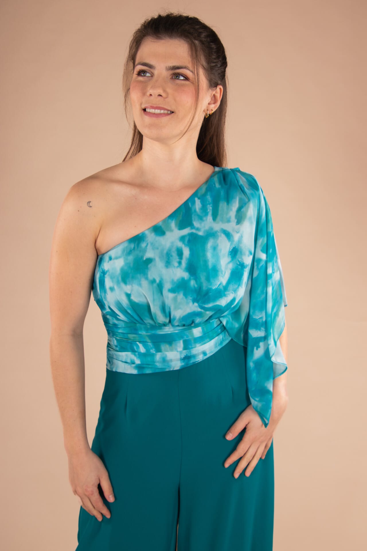 Tags: bruidsmeisjesjurk, feestelijk, getailleerd, jumpsuit, one shoulder